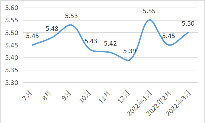 圖1 :2021年7月-2022年3月北京寫字樓市場租金情況
