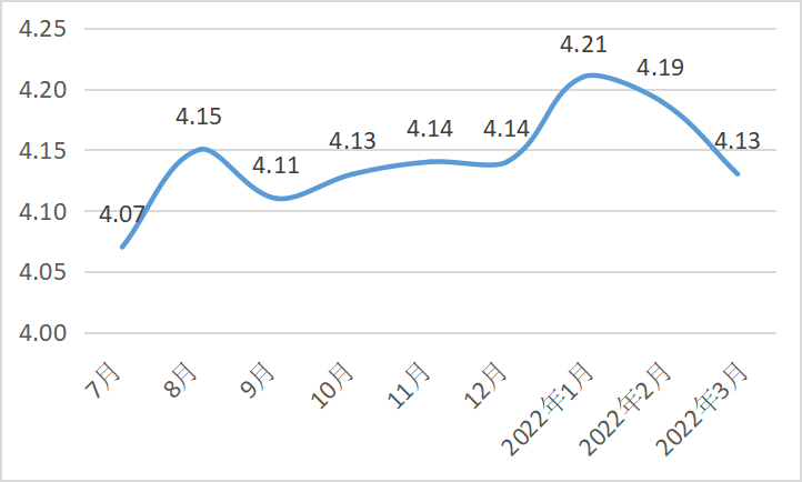 圖3:2021年7月-2022年3月上海寫字樓市場租金情況
