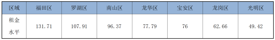 表4:3月深圳各區(qū)寫字樓租金水平(元/平方米/月)