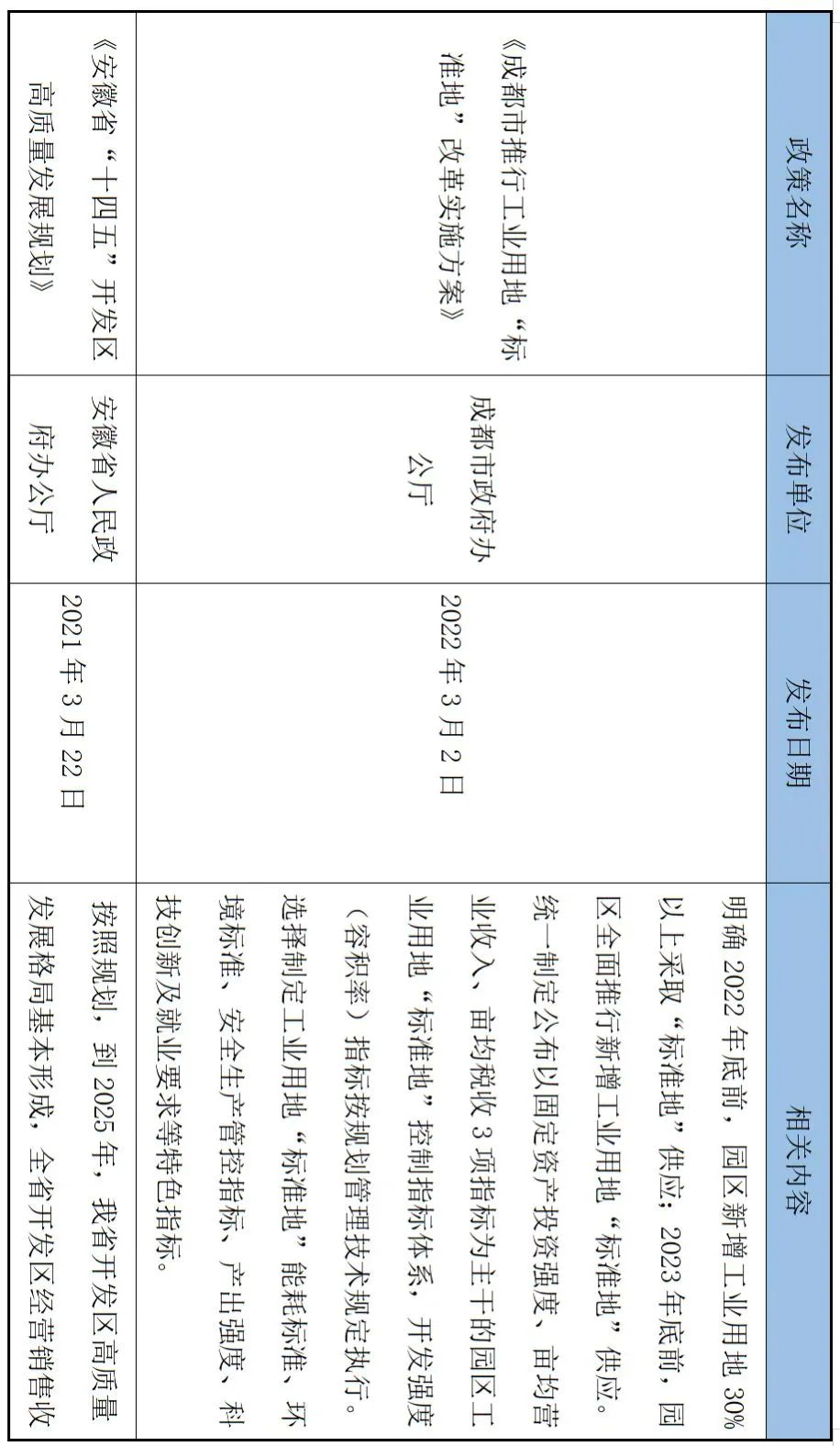 2022年1月,國務(wù)院辦公廳印發(fā)的《要素市場化配置綜合改革試點總體方案》,提出支持產(chǎn)業(yè)用地實行“標(biāo)準(zhǔn)地”出讓,提高配置效率。這是首次在國家層面提出產(chǎn)業(yè)用地標(biāo)準(zhǔn)地化。
