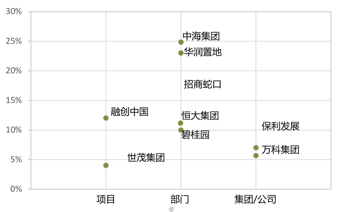 圖:TOP11-50代表房企城更項(xiàng)目占比及組織架構(gòu)情況