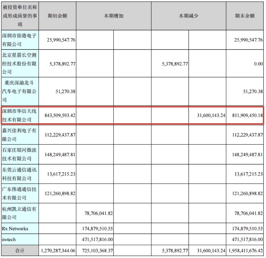 這筆商譽(yù)的形成要追溯到2015年。2015年7月,北斗星通以發(fā)行股份及支付現(xiàn)金相結(jié)合的方式購(gòu)買(mǎi)華信天線(xiàn)100%股權(quán),交易對(duì)價(jià)10億元,合并形成商譽(yù)約8.44億元。