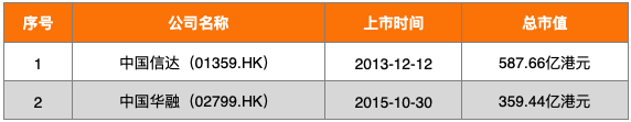 截至2021年2月,中國(guó)共有已上市AMC 2家,均為全國(guó)性AMC且都在港交所上市。