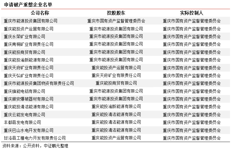 2022年4月11日,重慶市16家國有企業(yè)以已具備破產(chǎn)原因但具有重整價值及可行性為由,分別向重慶市第五中級人民法院申請破產(chǎn)重整,并同時提出預(yù)重整申請。目前重慶能投正在形成重整方案,預(yù)重整是否被法院備案登記、重整是否被法院受理尚存在不確定性。