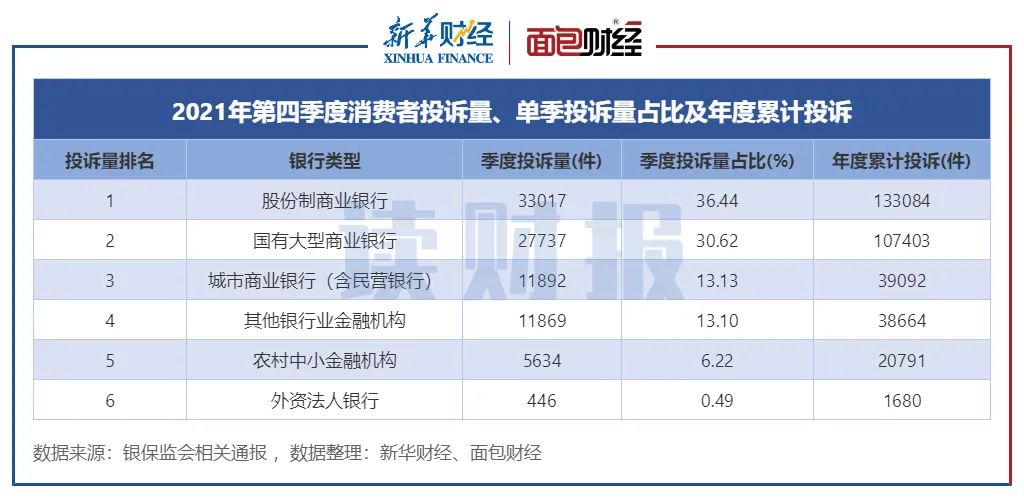 原標(biāo)題: 【讀財報】銀行業(yè)消費(fèi)者投訴透視:銀保監(jiān)會2021年處理逾34萬件投訴 股份制行被投訴量居首
