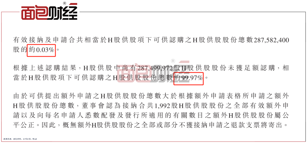 港股投資者參與供股者寥寥無(wú)幾,公司僅收到5份有效接納及申請(qǐng)。獲得有效認(rèn)購(gòu)的股數(shù)僅占H股供股總數(shù)的約0.03%。這意味著約99.97%的供股未獲認(rèn)購(gòu)。