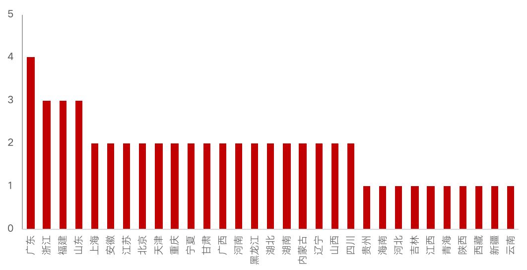 地方AMC自2012年由于國內不良規模增長設立而來,經歷了幾次擴容后。截至2020年10月底,已完成工商注冊并獲得銀保監會批復開展不良資產業務的地方AMC有57家,其中廣東擁有4家,浙江、福建和山東各擁有3家,北京、上海、江蘇、重慶、天津等17個省份或直轄市各有2家。