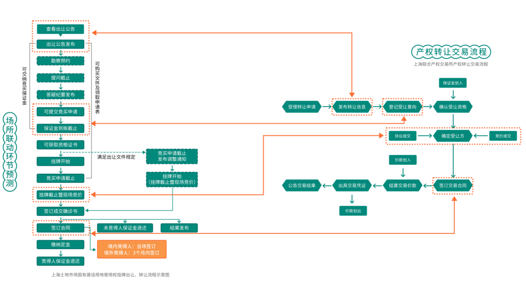 圖:上海土地市場國有建設用地使用權掛牌出讓、轉讓流程圖