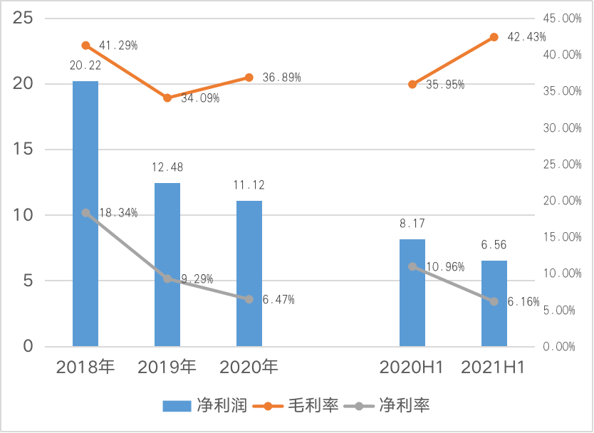 在盈利指標上,萬達商管歸母凈利潤出現(xiàn)了連年下滑的局面,從2018年的20.22億元下降至2019年的12.48億元,2020年進一步降至11.12億元,2021年上半年同樣同比下降19.7%。毛利率企穩(wěn)有所回升,今年上半年達到42.43%,創(chuàng)下近三年新高;銷售凈利率同樣出現(xiàn)了下滑情況,上半年已經(jīng)低至6.16%,與高毛利水平不相匹配,主要是由于今年上半年企業(yè)為調(diào)整運營模式,出售附屬公司從而你導致虧損13.2億。