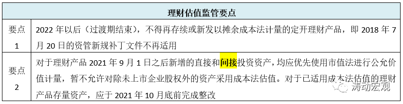 監(jiān)管要點(diǎn)明確今年9月1日后新增的直接和間接投資資產(chǎn)均應(yīng)優(yōu)先使用市值法進(jìn)行公允計(jì)量,暫不允許對(duì)除未上市企業(yè)股權(quán)外的資產(chǎn)采用成本法估值。這里的關(guān)鍵在于間接投資資產(chǎn)和非標(biāo)資產(chǎn)似乎均不能使用成本法估值,但非標(biāo)資產(chǎn)使用成本法估值是資管新規(guī)明確的,同時(shí)在目前鼓勵(lì)商業(yè)銀行補(bǔ)充資本的背景下,監(jiān)管尺度上還有待觀察。不過(guò)我們對(duì)此并不樂(lè)觀,因?yàn)閳?zhí)行尺度上總是先嚴(yán)后松,基本不會(huì)出現(xiàn)先松后嚴(yán)的情形。