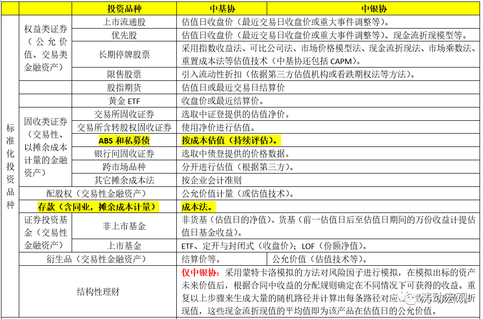 前面分析完,這里進(jìn)一步梳理不同資管投資品種的估值標(biāo)準(zhǔn)