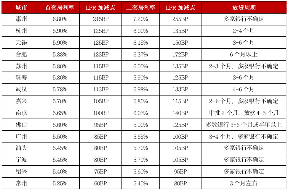 表:6月底至7月初多個熱點城市上調(diào)房貸利率并延長放貸周期