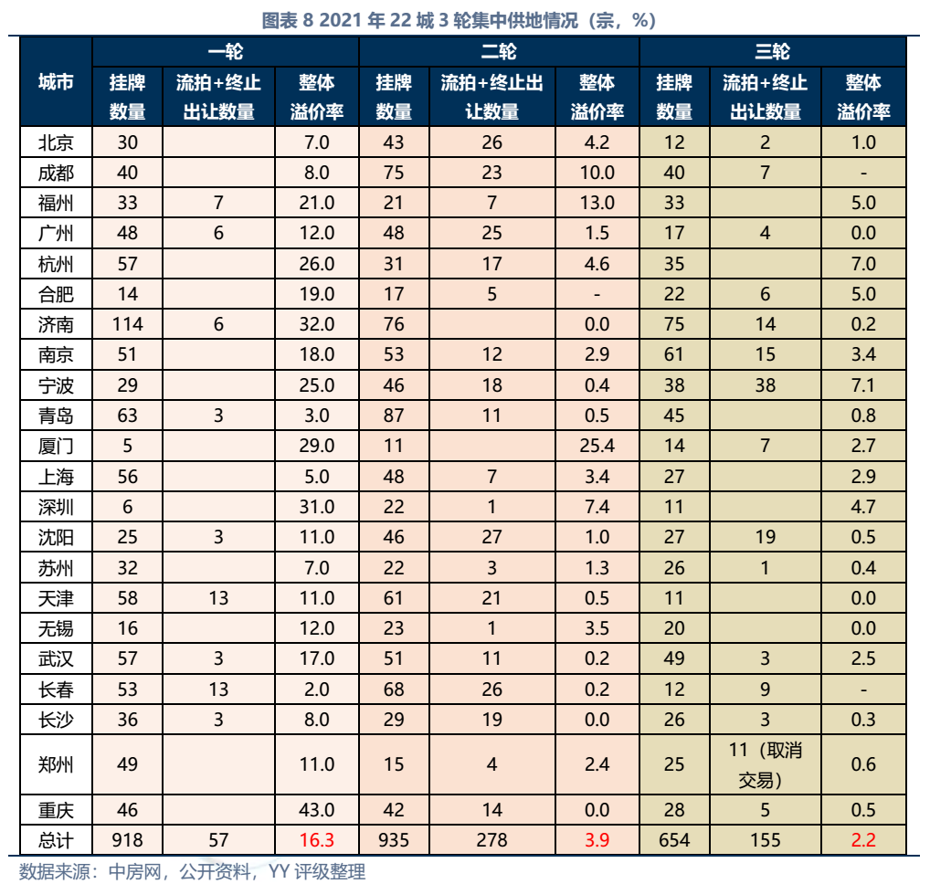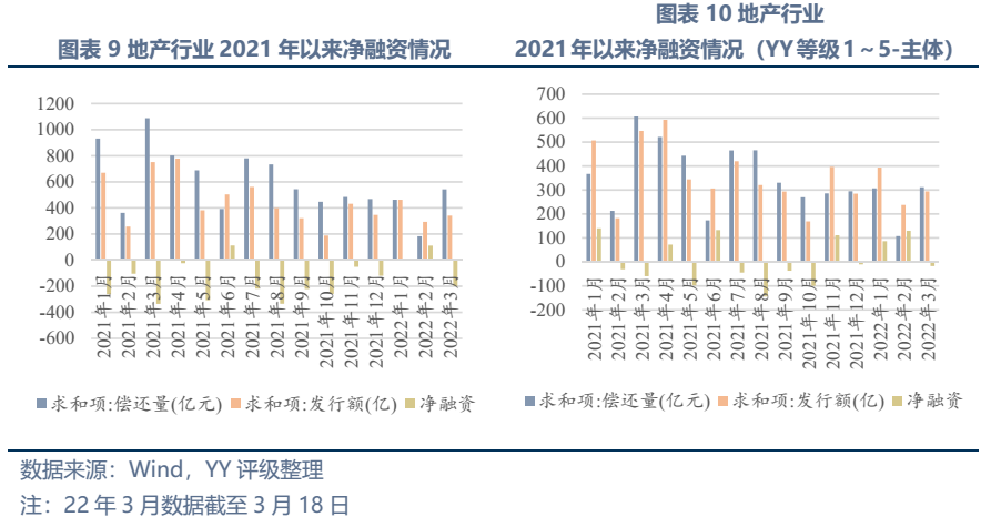 因此近年來房地產(chǎn)企業(yè)面臨從經(jīng)營端到融資端的前后夾擊,其中經(jīng)營端包括限購、限貸、限價、減緩備案、預(yù)售資金監(jiān)管等,融資端包括打擊信托融資、三道紅線、銀行貸款集中度管理等,融資壓力下房企拿地?zé)崆橄陆担诙啞⒌谌喭僚挠隼洌僚膬r格走低意味著房企手中的存貨價值縮水,房企債務(wù)壓力進一步加大,拿地積極性進一步降低…且在此過程中,不僅原本財務(wù)結(jié)構(gòu)欠穩(wěn)健的企業(yè)風(fēng)險直接被刺破,一些相對面臨融資環(huán)境沒那么惡劣的企業(yè)也開始收縮杠桿,21年下半年YY等級1~5-投資級地產(chǎn)主體凈融資-226億元。