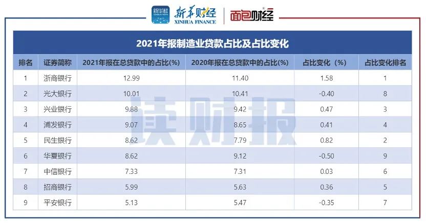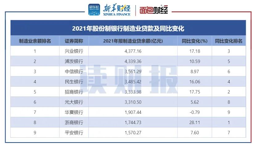 新華財經及面包財經研究員對9家上市股份制銀行財報進行梳理,通過信披數據從普惠型小微企業貸款余額、涉農貸款、制造業貸款等角度,客觀展現股份制銀行支持實體經濟情況。