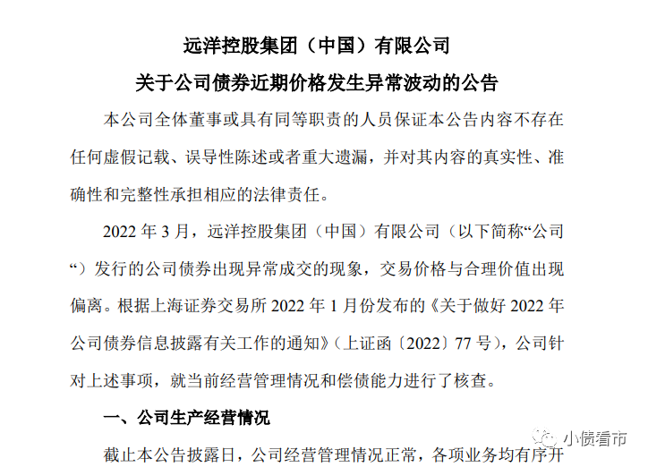 很快,遠洋控股公告稱,公司經營管理情況正常,各項業務均有序開展,無重大不利變化。