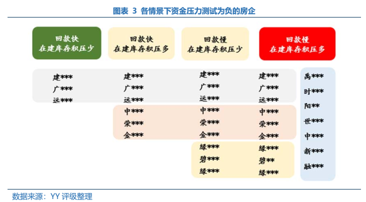 在最樂觀情形下,FL、JY等名字主體,仍是有資金缺口;而在中性1組合下,則RS、JK等接連扛不住,緊接著中性壓力測試2下則是Grennland等也加入陣營,而在去化和回款雙重降幅悲觀預期下,此前的YZ、ZN等主體紛紛中招。殺傷面之廣,似乎壓力的進行仍在進行中。
