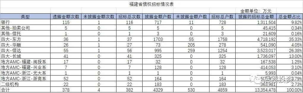 我們共統計到福建省2019年債權處置公告382條4329戶,轉讓成交公告178條3441戶,數量規模與2018年接近,但金額規模較2018年有變化。
