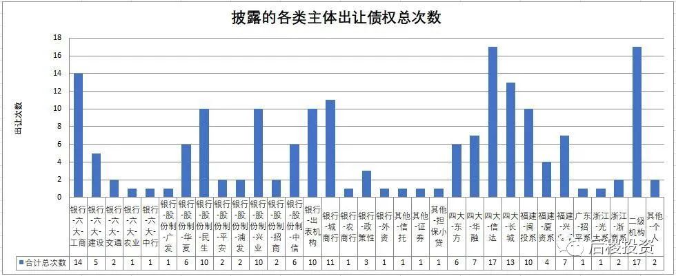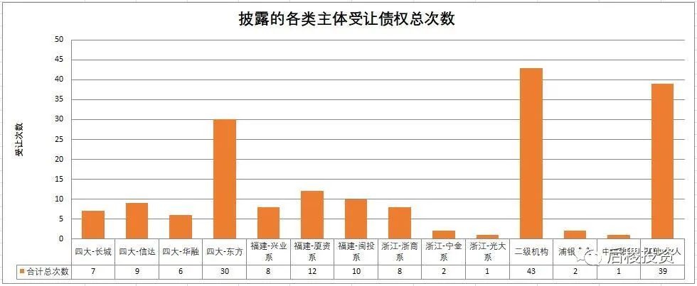 在我們搜集到的公開轉讓記錄中,未透露債權金額的共有36筆。其中大部分對成交情況判斷影響不大,但有關信達的成交記錄絕大部分均未透露債權金額,信達出讓的10次記錄全部未透露金額,而受讓的9次記錄也未透露,這造成了本文中信達債權成交額信息缺失,對總量和信達本身的情況判斷變得困難,在此提醒讀者注意。