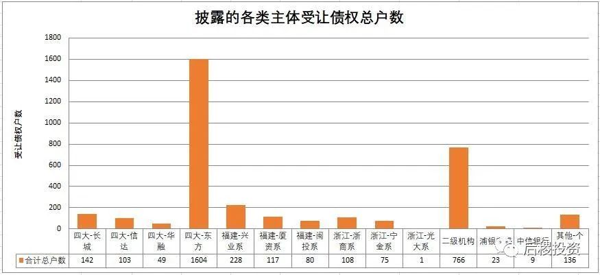 c、東方的受讓規模也大幅領先其他AMC,信達的金額未透露,但從按次數和戶數推算,其與長城和華融的受讓規模應當接近。