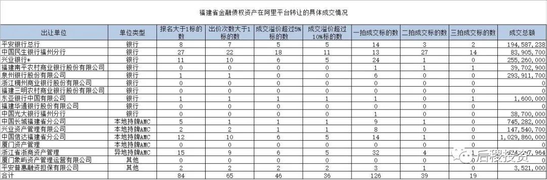 福建省金融債權資產在阿里平臺轉讓成交情況