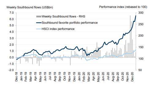 截至1月28日,南向資金連續19個交易日凈流入額超百億元,去年一年的凈流入量僅為3000多億元。