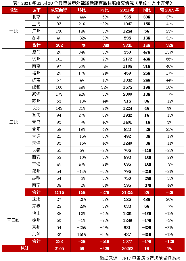 通過(guò)估算30個(gè)重點(diǎn)城市12月成交量環(huán)比增長(zhǎng)9%,預(yù)計(jì)全年商品住宅成交面積再創(chuàng)新高,同比微增。