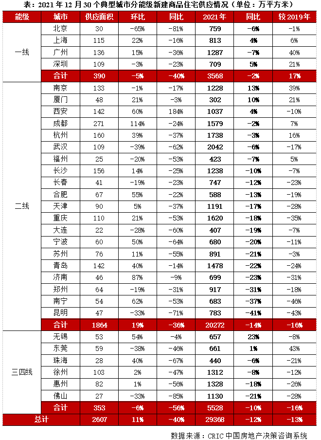 通過(guò)估算30個(gè)重點(diǎn)城市12月供應(yīng)量,預(yù)計(jì)全年商品住宅供應(yīng)面積同比降幅較前11月進(jìn)一步擴(kuò)大。