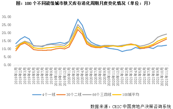 2、消化周期:下半年后加速上行,三四線升至19.2個(gè)月