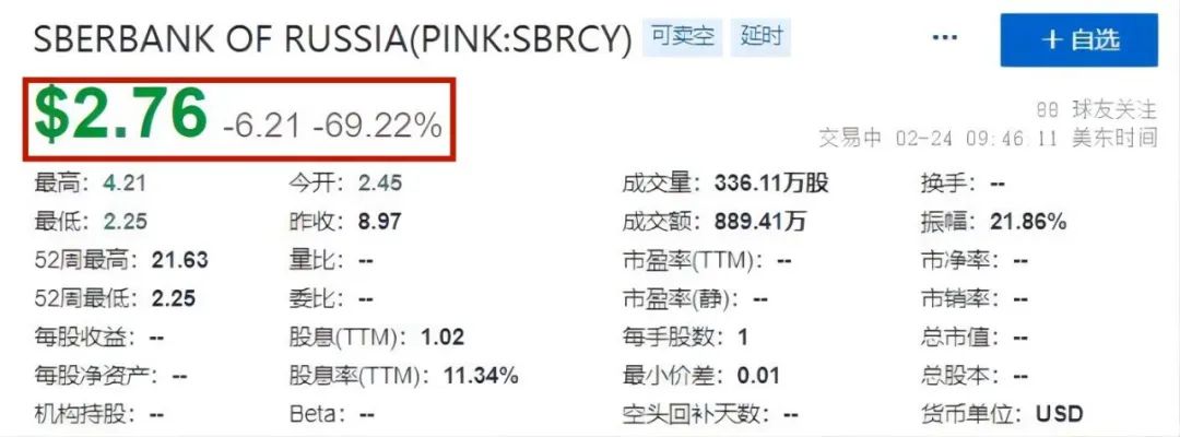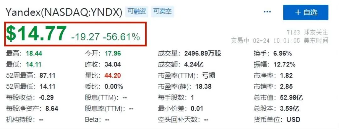 2月24日,美股開盤之后,在美國發行證券的俄羅斯公司股價在開盤后均出現暴跌。此前,這些公司的股價已經連續數個交易日大幅下跌。