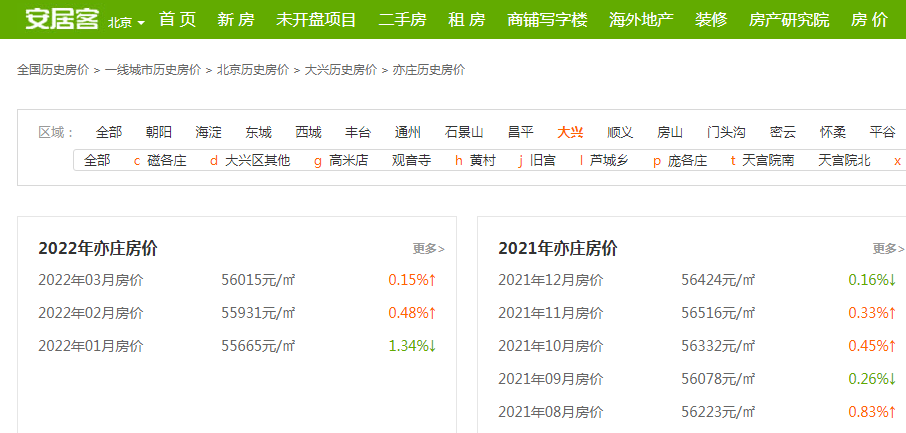 亦莊板塊3月二手房掛牌均價56015元/㎡,環比2月漲0.15%,同比2021年同期上漲1%。按此漲幅計算,一年漲5288元/㎡。