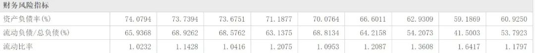 資產(chǎn)負(fù)債率同比微升——從2020年的57.7%上升到2021年的57.8%,當(dāng)然也不算高哈;流動負(fù)債占比依然不低(2021年為54.24%);
