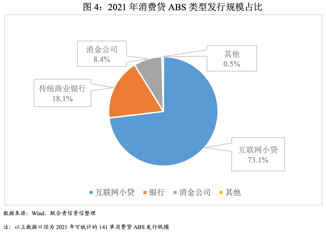 3、互聯(lián)網(wǎng)小貸平臺仍是消費(fèi)貸ABS發(fā)行主力