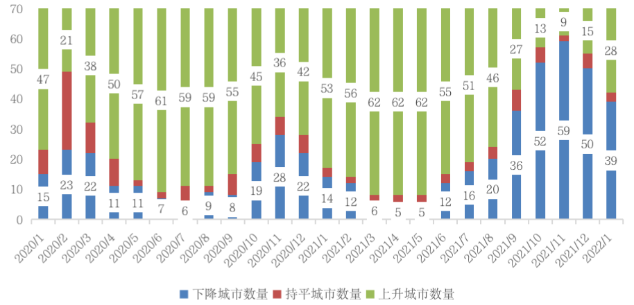 2022年2月21日,國(guó)家統(tǒng)計(jì)局公布了2022年1月份70個(gè)大中城市住宅銷售價(jià)格統(tǒng)計(jì)數(shù)據(jù)。新建商品住宅銷售價(jià)格環(huán)比降勢(shì)減弱,環(huán)比下降城市個(gè)數(shù)減少。信貸邊際寬松暖風(fēng)陣陣,廣州、寧波、溫州等多個(gè)城市房?jī)r(jià)止跌回升。