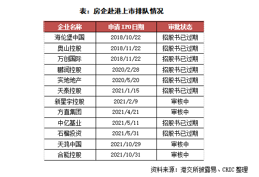 本月沒有新增房企向港交所遞交招股說明書,因此截至2021年底,在港交所在遞交過招股書但仍未成功上市的房企仍為12家,其中有8家房企在招股書過期后都沒有更新招股書,未來是否會繼續(xù)上市進程還有待觀察。