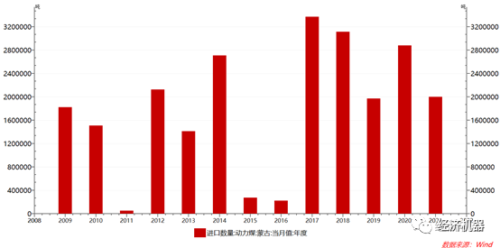 短缺等限制,我國自海外進口大宗商品也受到一定影響。比如我們給予厚望的蒙古煤,1-8月份,我國從蒙古進口動力煤僅110萬噸,比去年同期下降20%,如果四季度不能如期出現放量,那么全年進口將大幅下降(圖10)。