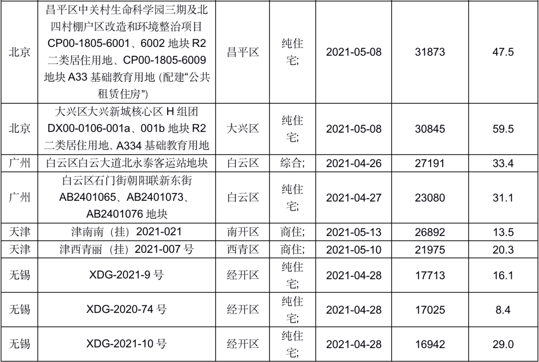 我們認為,接下來的土拍焦點將集中在北京、廣州、天津、無錫、紹興、義烏、溫州等城市;尤其是北京,起拍價超過3萬元/平方米的土地就有16宗之多,其中不乏海淀樹村、金盞鄉小店村這種起拍價超過5萬/平方米的優質地塊,未來土拍熱度也或將在這些優質地塊的帶領下顯著升溫。