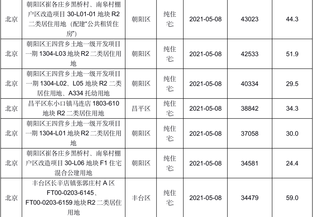 其中,北京起拍單價超過3萬元/平方米的地塊有16宗之多,分別位于海淀、朝陽、昌平、大興、豐臺和石景山區,其中一度因“競地價、競政府持有商品住宅產權份額、競高標準商品住宅建設方案”的掛牌出讓方式引發社會熱議,并被中止出讓的兩宗海淀區樹村地塊也在首次集中掛牌之列。