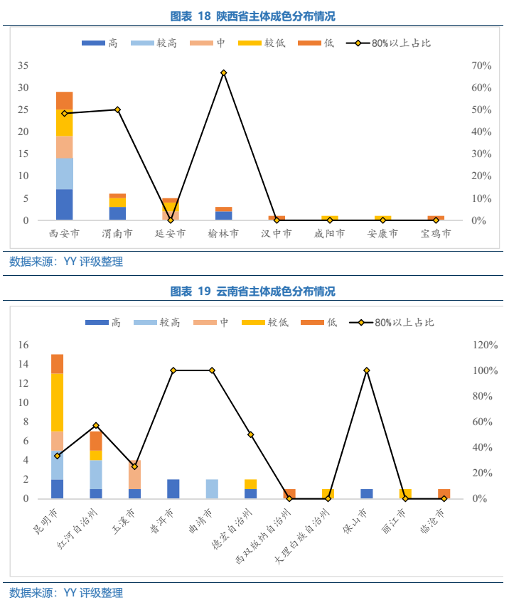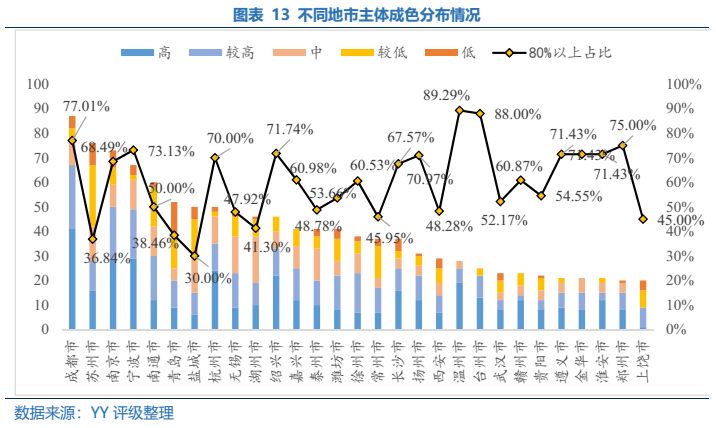 01 大多數YY口徑城投平臺成色水平均在50%以上;