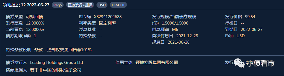 公告顯示,2021年6月28日領地控股發行本金總額1.5億美元的現有票據,票息12.0%,于2021年12月28日及2022年6月27日期末支付。截至本公告日期,現有票據的未償還本金額為1.23億美元。