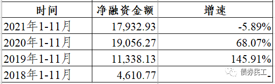 但是如果從城投債凈融資的增速來(lái)看,2021年1-11月是城投債的凈融資額最近三年唯一一次的負(fù)增長(zhǎng)。2019年和2020年城投債凈融資實(shí)現(xiàn)了高速增長(zhǎng),2021年卻出現(xiàn)了一個(gè)急剎車(chē)。這個(gè)凈融資增速急剎車(chē)是多種因素形成的,疊加了信用環(huán)境變化、政策收緊、城投公司信用分化等多種因素。