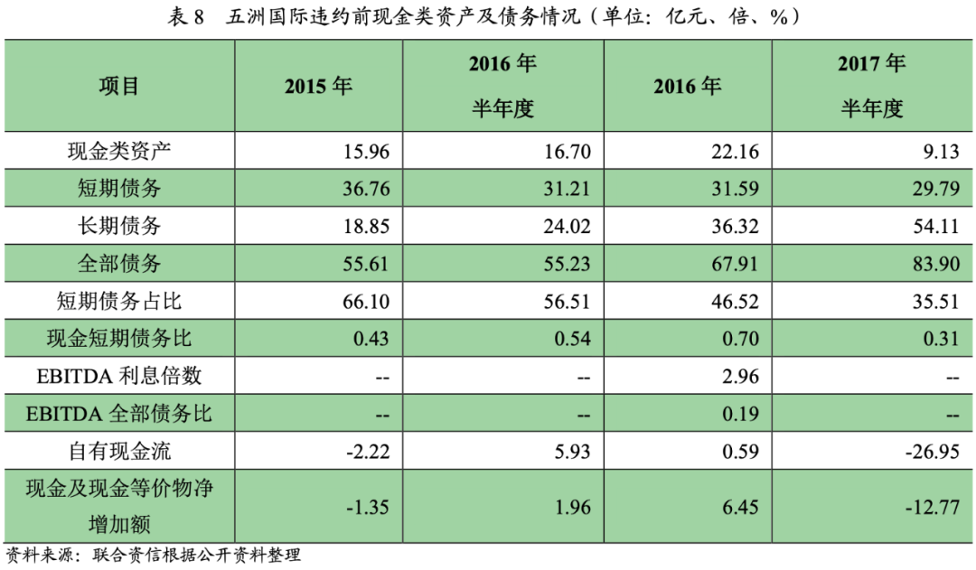 2018年7月5日,五洲控股已發(fā)生債務(wù)違約,控股股東雖然為五洲國際債務(wù)提供擔(dān)保,但自身收入下滑,盈利虧損,經(jīng)營活動現(xiàn)金流量凈額持續(xù)為負(fù),自身償債能力不足,對五洲國際債務(wù)已無擔(dān)保能力。