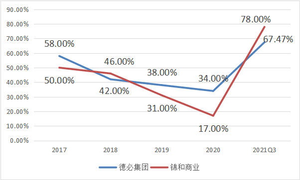營業(yè)收入:德必集團(tuán)營收反超錦和商業(yè)
