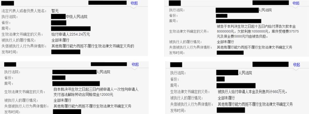據調查,除了與A公司的債務糾紛,C某還涉及四條失信人信息,全部未履行,共計涉及金額約3824.7萬。