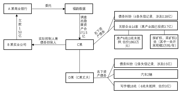 今天,我們將以一個真實客戶案例為大家揭曉如何破解債務方失聯的難題。為方便大家理解,特繪制本次案例的整體關聯圖,以供參考。