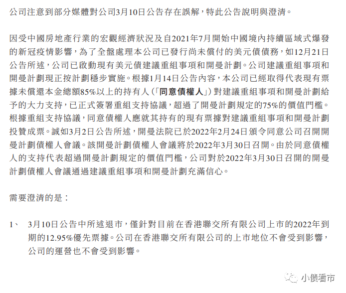 公告顯示,3月10日金輪天地控股公告中所述退市,僅針對(duì)目前在香港聯(lián)交所上市的2022年到期的12.95%優(yōu)先票據(jù)(ISIN:XS2100655807)。