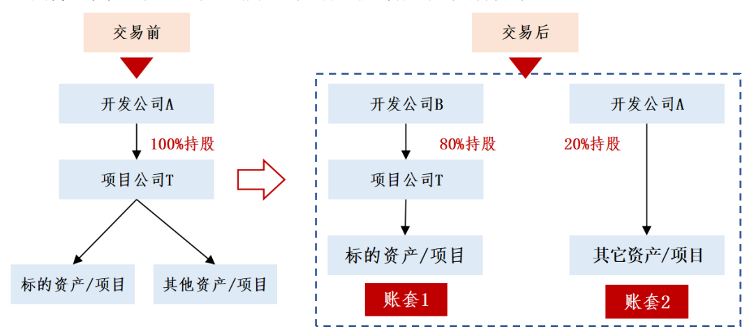 2)非目標資產的所有者權益部分不僅僅要在拆分時點大于0,更要考慮在標的資產完成開發,收購方退出時,非標的資產權益部分仍然要大于0,否則就會出現標的資產部分替非標的資產背債的情況,如果合作方有其他足值資產替非標的資產權益做擔保,也可接受。
