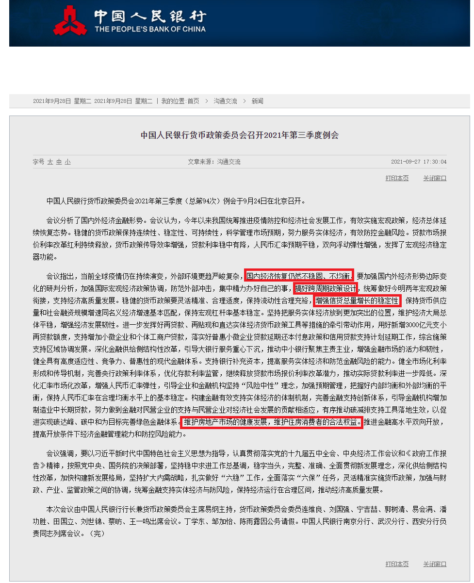 央行貨幣政策委員會2021年第三季度(總第94次)例會于9月24日在北京召開。