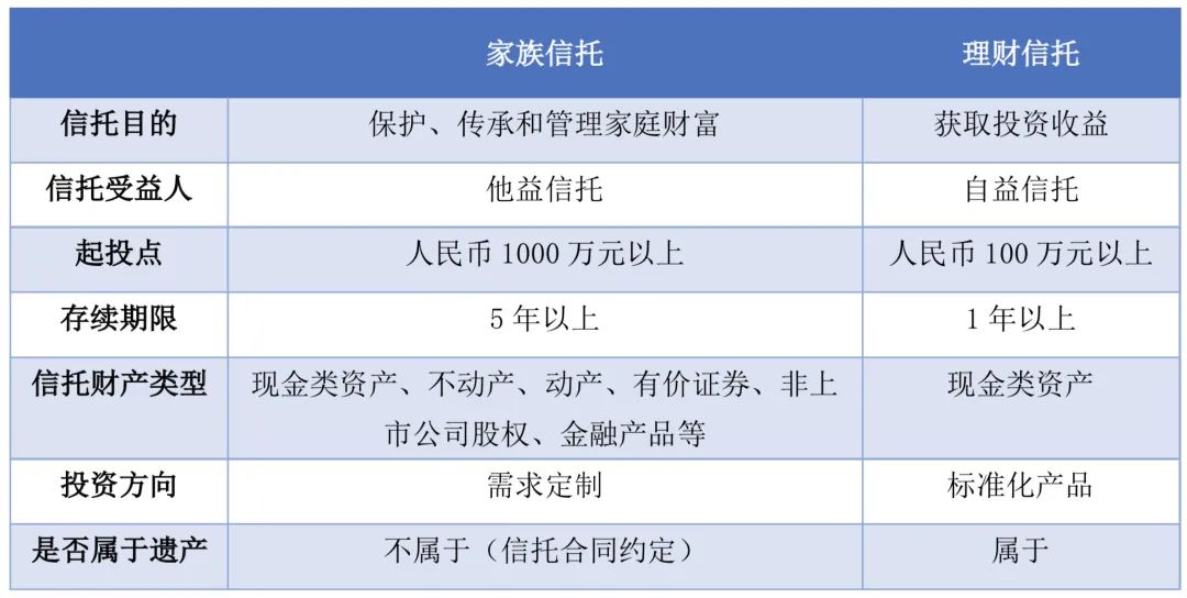 表一:家族信托與資金理財(cái)信托主要區(qū)別