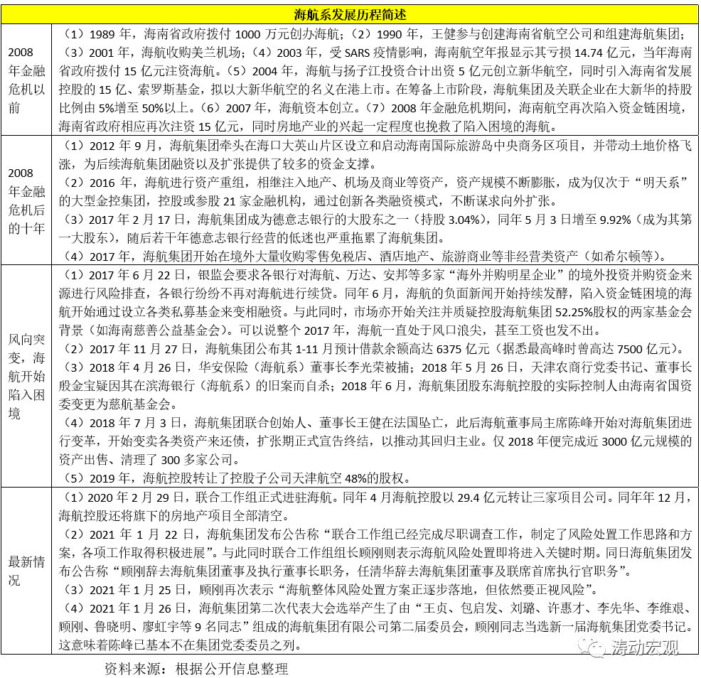 2、2018年4月26日,華安保險(海航系)董事長李光榮被捕;同年年5月26日,天津農商行黨委書記、董事長殷金寶疑因其在濱海銀行(海航系)的舊案而自殺;同年6月,海航集團股東海航控股的實際控制人由海南省國資委變更為慈航基金會;同年7月3日,海航集團聯合創始人、董事長王健在法國墜亡。
