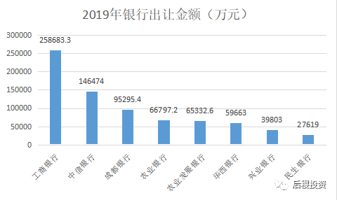 從上圖來(lái)看,工商銀行排名第一,全年出讓金額近26億元,占比34%;中信銀行與成都銀行排名二三,其余五家銀行出讓金額相差不大。
